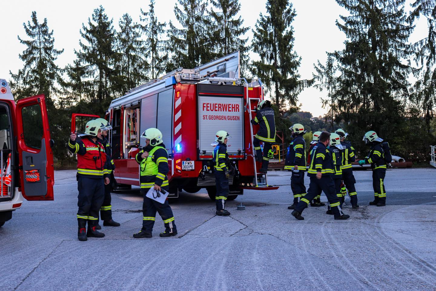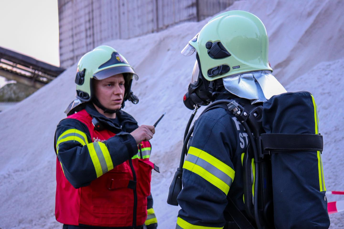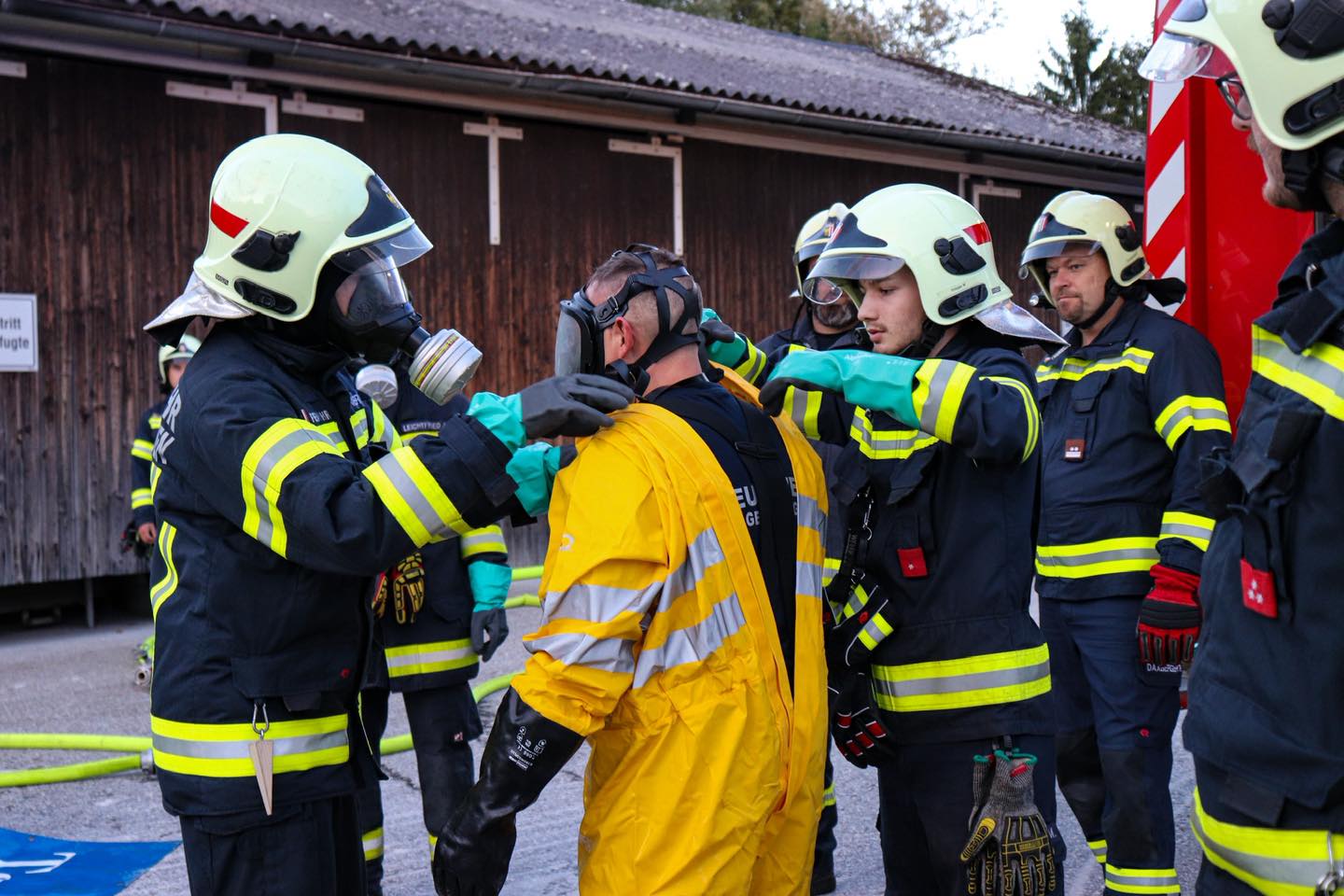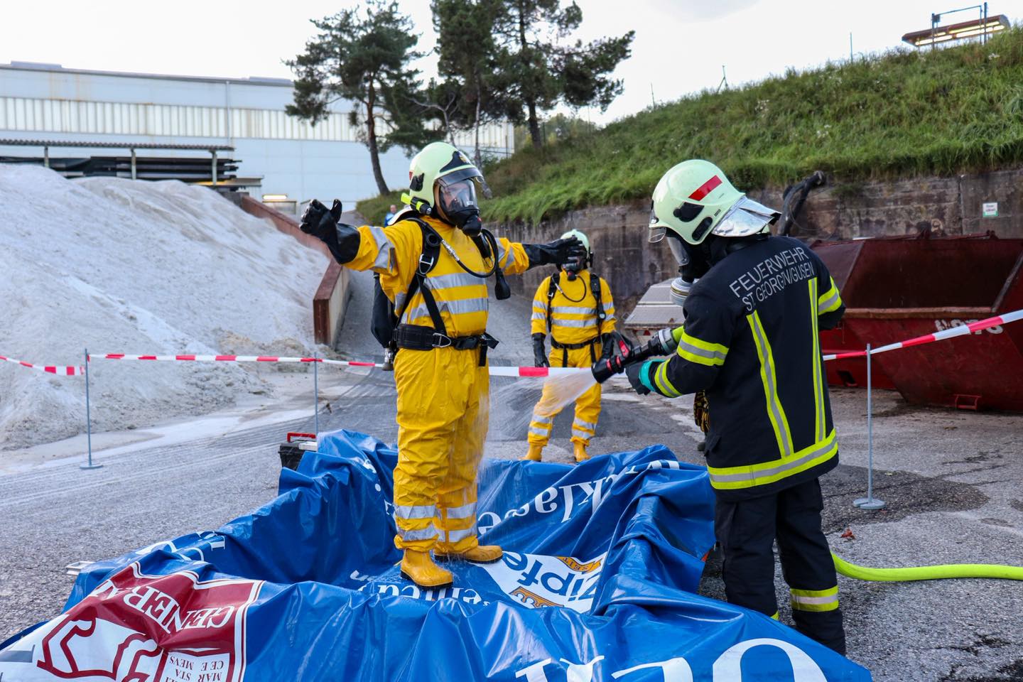 Am vergangenen Freitag wurde im Quarzwerk St. Georgen/Gusen eine Einsatzübung abgehalten. Das angenommene Szenario lautete zunächst, dass eine Person unter einem Stapler eingeklemmt sei. Vor Ort zeigte sich jedoch eine andere Lage: Der erste Atemschutztrupp entdeckte bei der Erkundung ein Leck an einem IBC-Container, aus dem ein gefährlicher Stoff austrat. Die verletzte Person konnte gerettet und nach einer Not-Dekontamination an den Rettungsdienst übergeben werden. Parallel dazu rüstete sich ein weiterer Atemschutztrupp mit Schutzstufe-2-Anzügen aus, um das Leck so gut wie möglich abzudichten. Nach Abschluss des Einsatzes mussten beide Atemschutztrupps dekontaminiert werden. Danke an die Übungsleitung und an quarzwerke für die Bereitstellung des Firmengeländes.