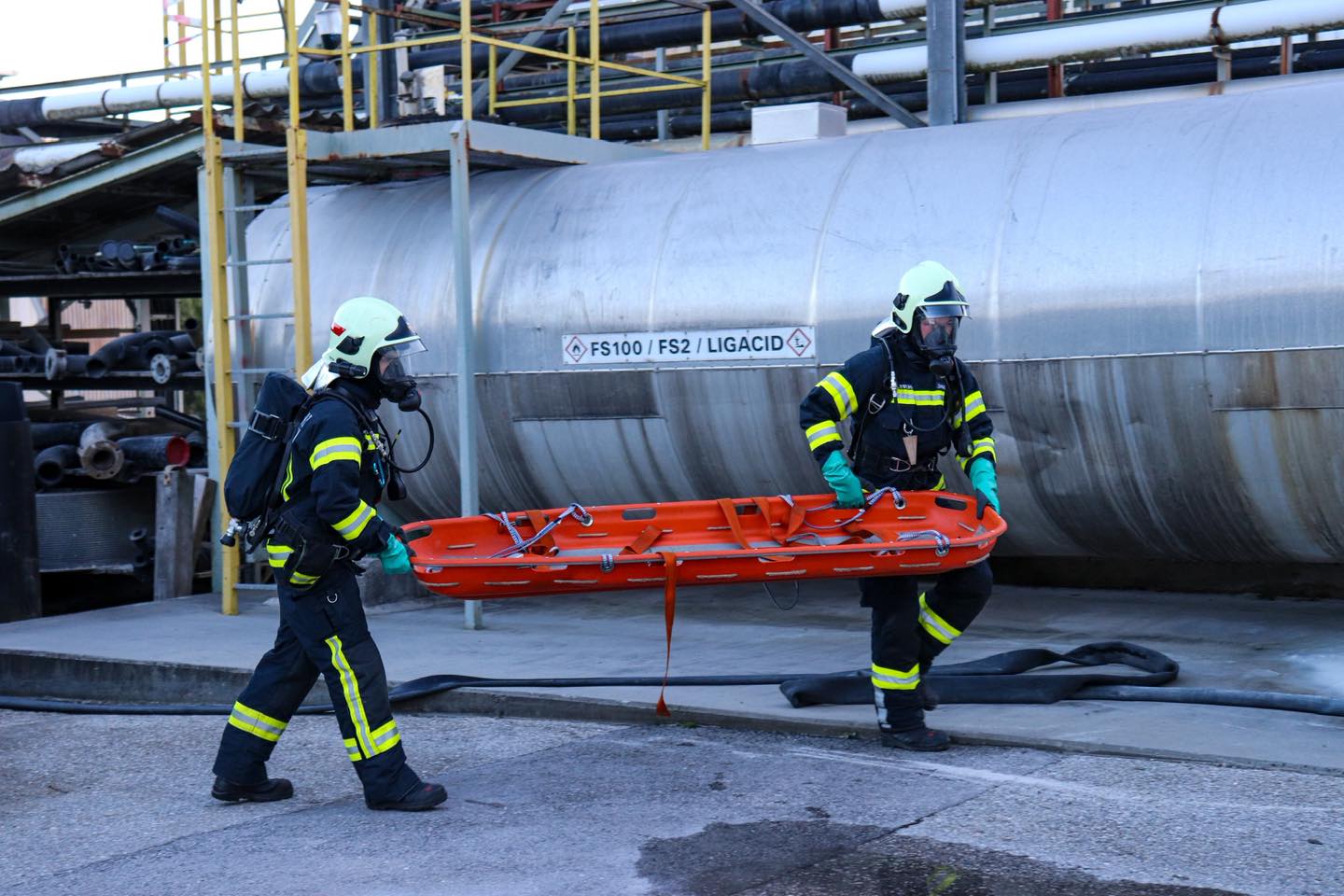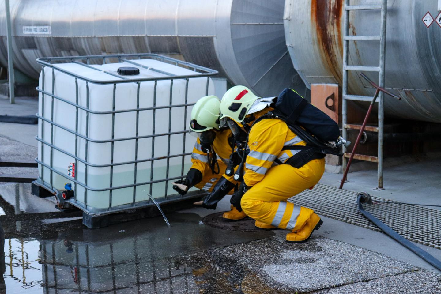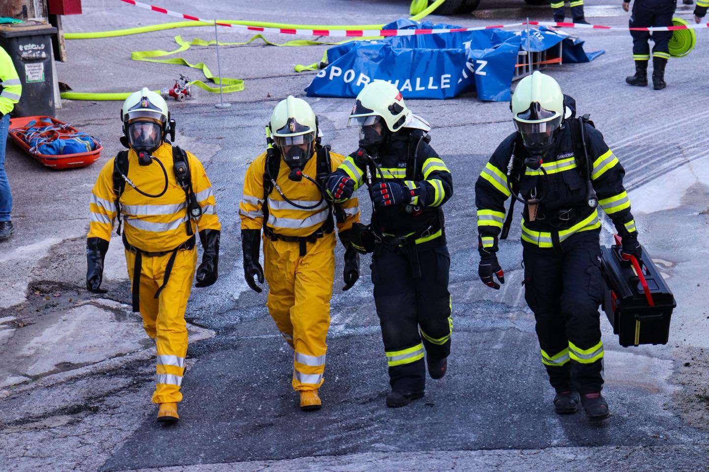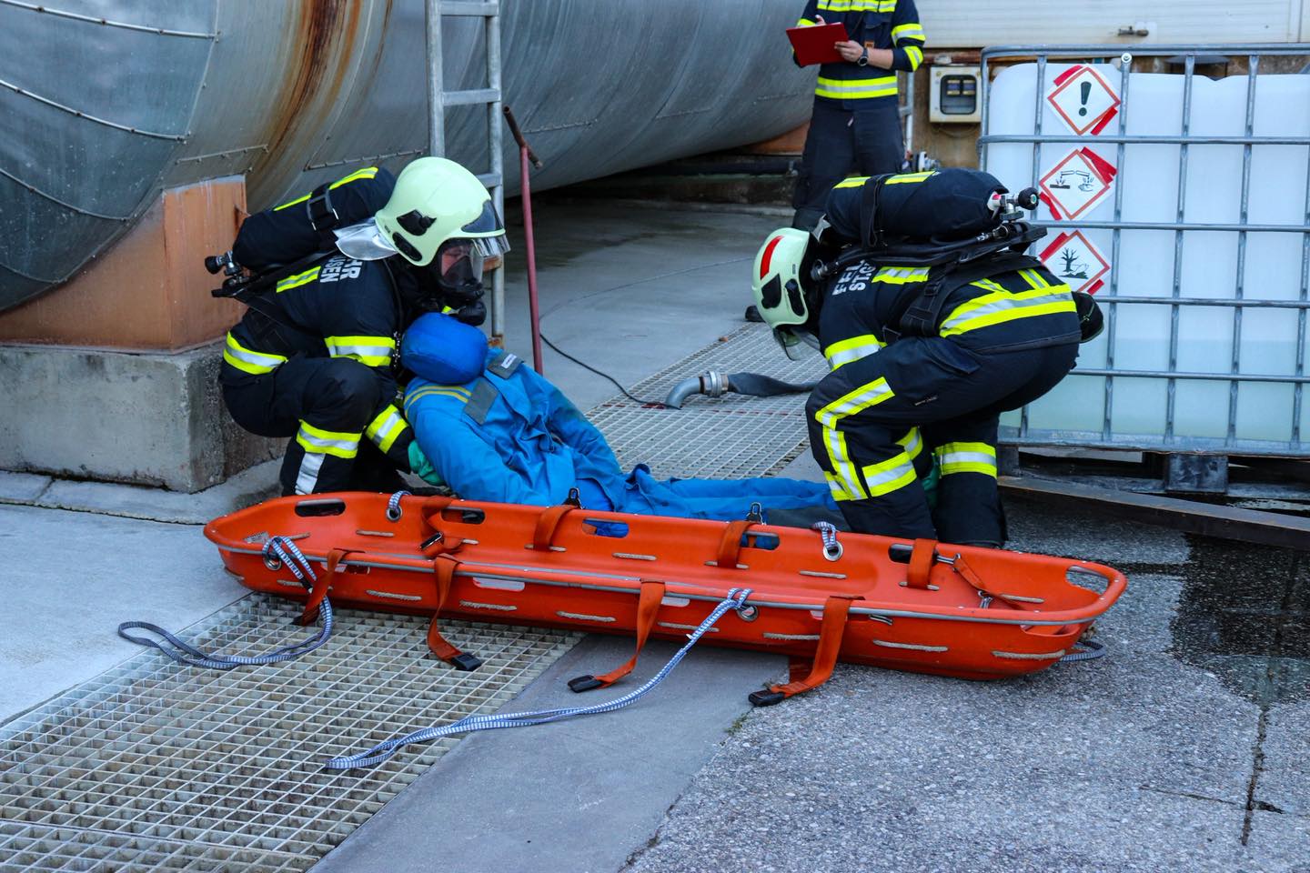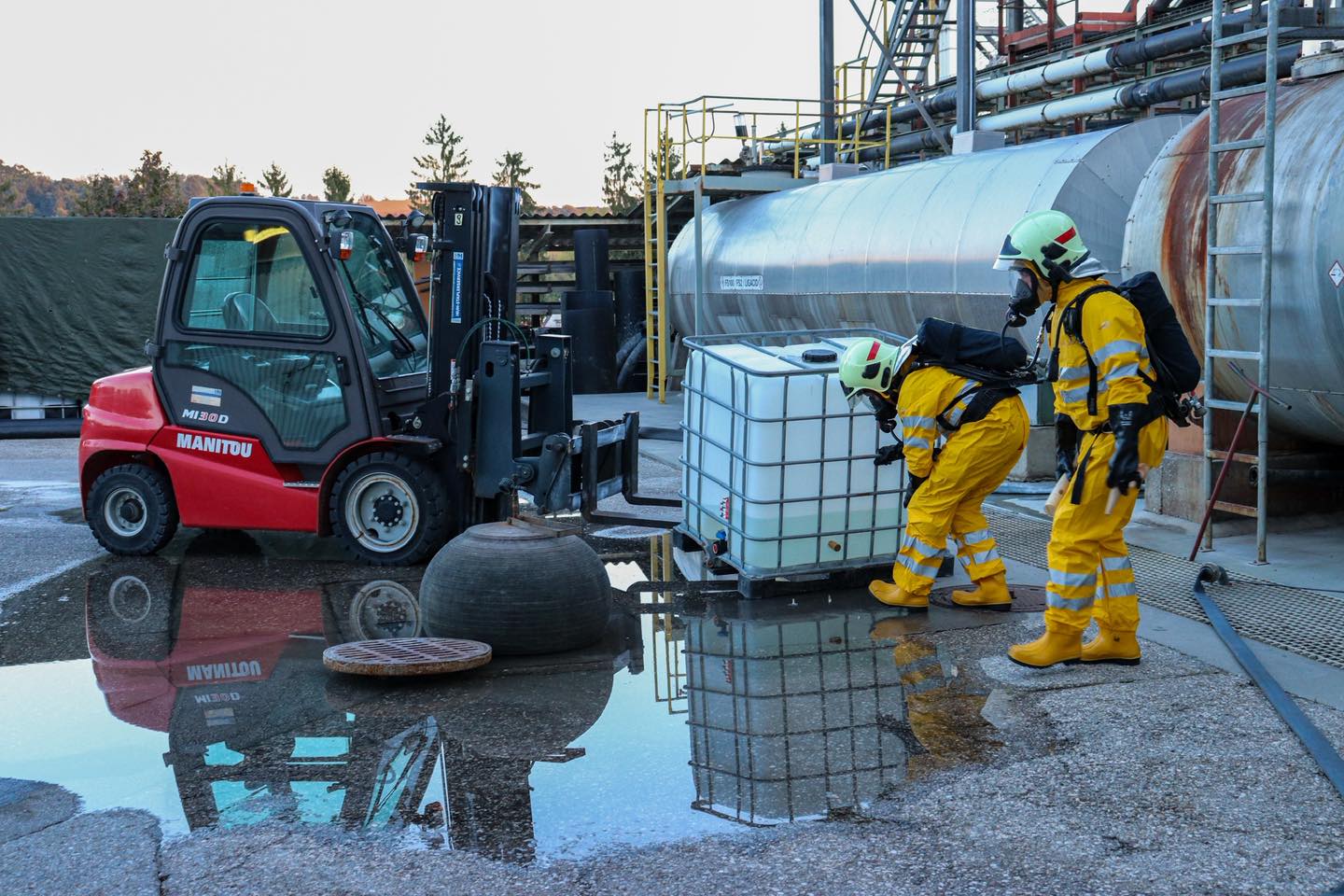 Am vergangenen Freitag wurde im Quarzwerk St. Georgen/Gusen eine Einsatzübung abgehalten. Das angenommene Szenario lautete zunächst, dass eine Person unter einem Stapler eingeklemmt sei. Vor Ort zeigte sich jedoch eine andere Lage: Der erste Atemschutztrupp entdeckte bei der Erkundung ein Leck an einem IBC-Container, aus dem ein gefährlicher Stoff austrat. Die verletzte Person konnte gerettet und nach einer Not-Dekontamination an den Rettungsdienst übergeben werden. Parallel dazu rüstete sich ein weiterer Atemschutztrupp mit Schutzstufe-2-Anzügen aus, um das Leck so gut wie möglich abzudichten. Nach Abschluss des Einsatzes mussten beide Atemschutztrupps dekontaminiert werden. Danke an die Übungsleitung und an quarzwerke für die Bereitstellung des Firmengeländes.