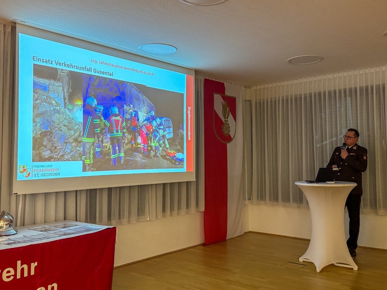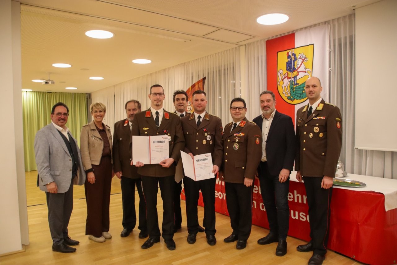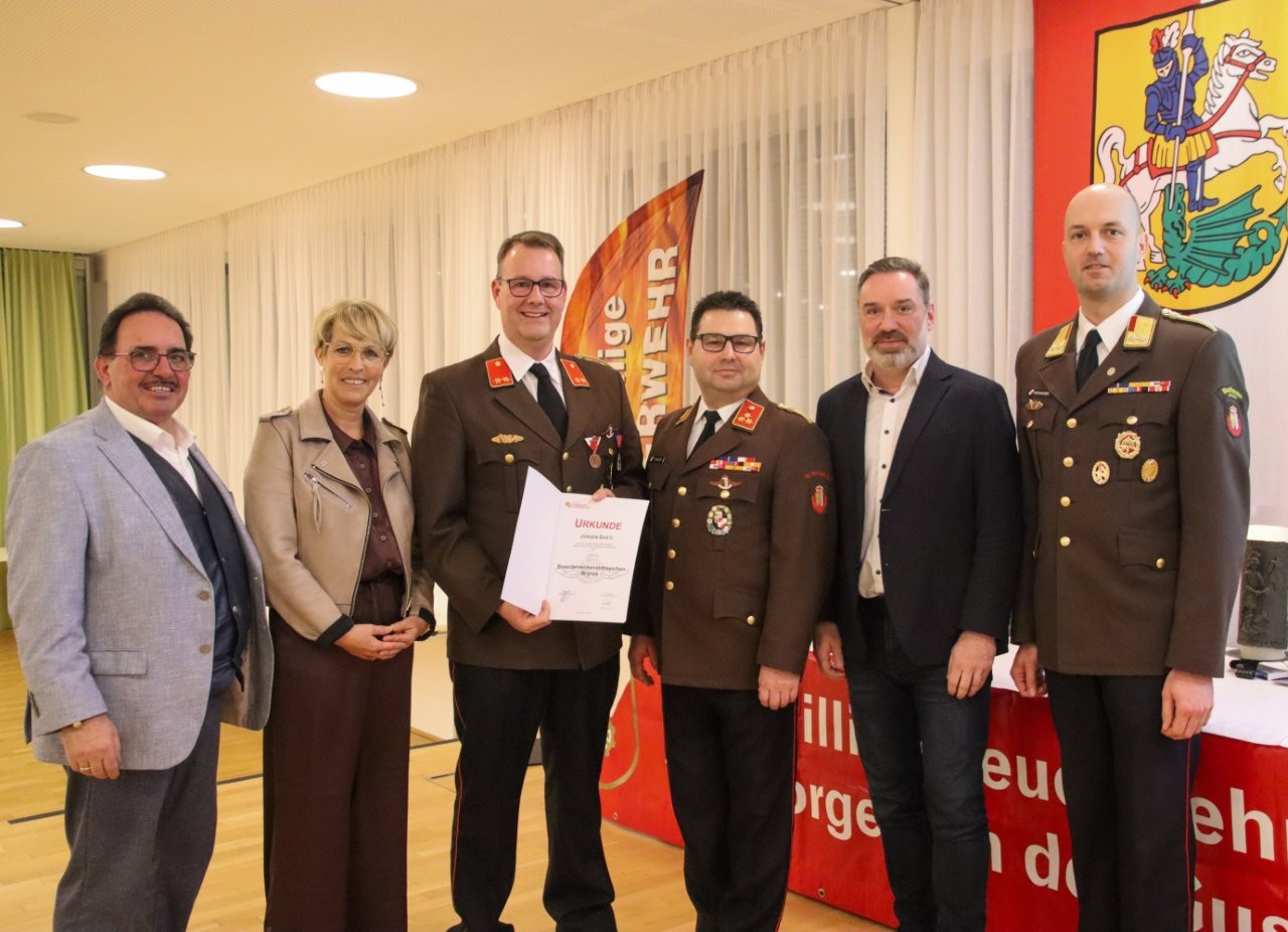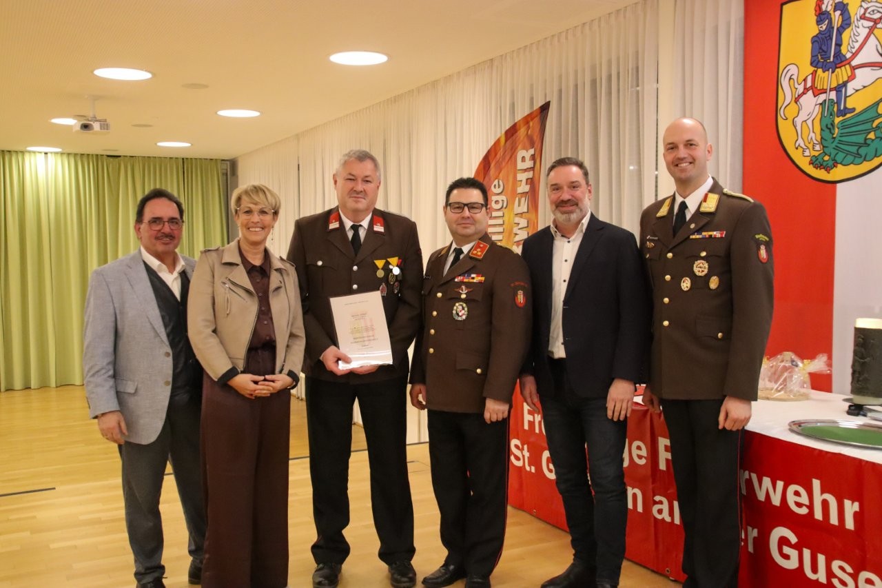 Vorige Woche Freitag war es wieder soweit: Die Jahresvollversammlung fand ihre 129. Wiederholung. Im Gasthaus SAM fanden sich aus diesem Anlass die Kameradinnen und Kameraden der Feuerwehr St. Georgen, gemeinsam mit Vertreterinnen und Vertretern aus Politik, Landesfeuerwehrverband und Rotem Kreuz ein. Bürgermeister Andreas Derntl, Vizebürgermeisterin Michaela Traxler, Landtagsabgeordneter Erich Wahl und einige weitere Gemeinderäte, sowie Abschnittsfeuerwehrkommandant BR Christoph Neuhauser beehrten dabei die Versammlung. Neben vielen Berichten der Funktionäre bildeten Beförderungen und Ehrungen das Highlight des Abends. So wurden Matthias Prantner, Gerald Krenmayr, Reinhard Punzenberger, Lukas Kern und Fritz Frühwirt das bronzene Feuerwehr-Verdienstzeichen des Bezirks Perg überreicht. Kommandant-Stellvertreter Jürgen Dastl ehrte man mit dem Bewerterverdienstabzeichen in Bronze. Danach galt es, etliche Jubilare für ihre langjährige Mitgliedschaft auszuzeichnen: Benjamin Brunner, Marko Danner, Wolfgang Rammer, Jürgen Trchlin (25 Jahre), sowie Michael Ramer (40 Jahre). Manfred Stadlmann feierte seine 60-jährige (!) Mitgliedschaft. Abgerundet wurde der Abend mit Grußworten der Ehrengäste im gemütlichen Beisammensein.