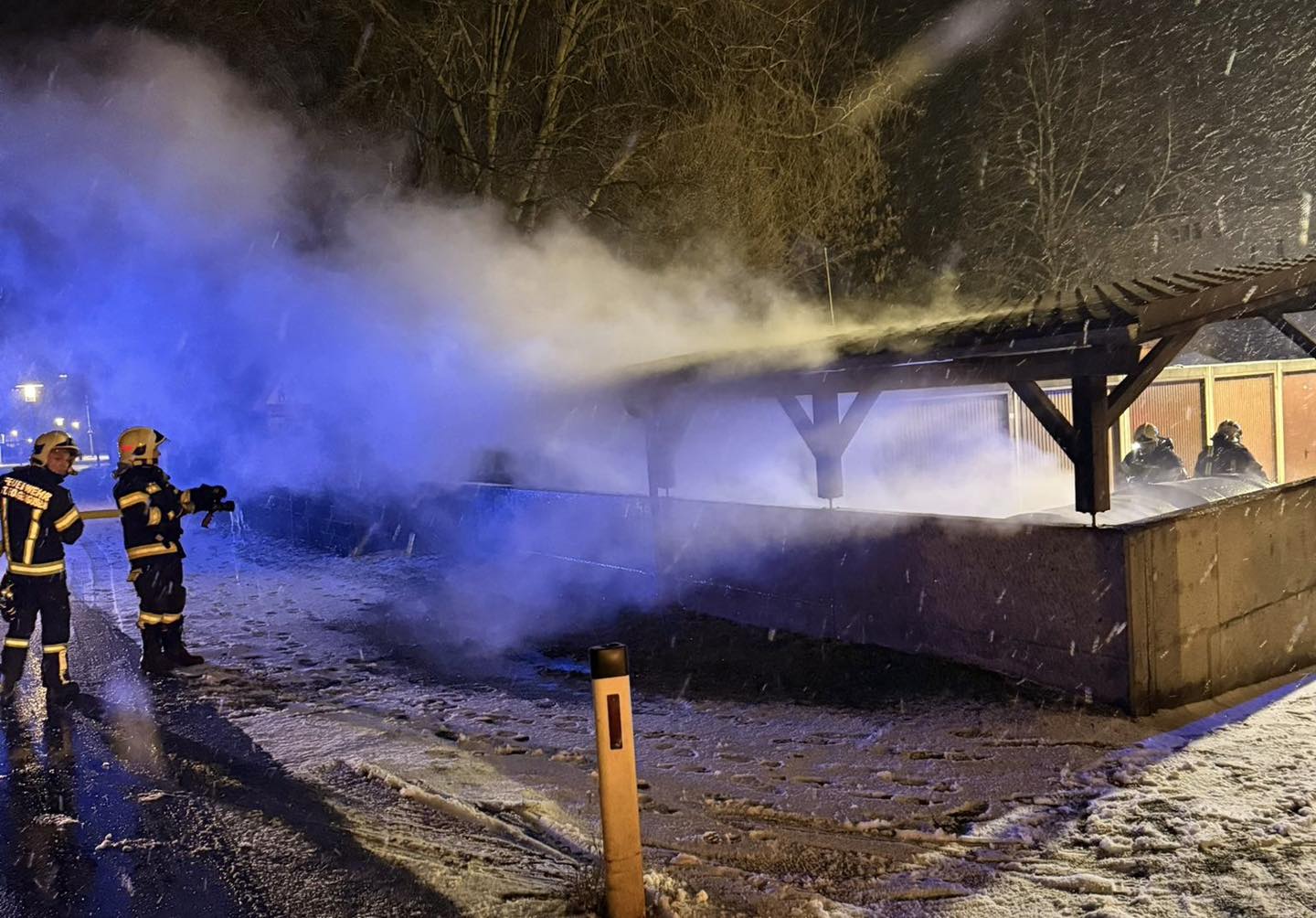 Exakt eine Stunde und sieben Minuten war 2026 alt, als zum ersten Mal heuer die Sirenen aufheulten und sich die Feuerwehr St. Georgen zu den zahlreichen anderen Feuerwehren im ganzen Land hinzugesellte, die einen Brandeinsatz abzuarbeiten hatten. Bei einer Müllinsel geriet ein Container in Brand. -An dieser Stelle schreiben wir immer „aus ungeklärter Ursache“ und das soll auch so bleiben, weil sich die Feuerwehr an Spekulationen nicht beteiligt. Wir möchten lediglich auf die Gefahren von Feuerwerkskörpern aufmerksam machen und anmerken, dass das Hantieren mit Böllern und dergleichen in unmittelbarer Umgebung von zB. Müllcontainern zu so einem Brand führen kann.- Während sich ein Atemschutztrupp mittels Schnellangriff um den Brand kümmerte, verhinderte ein zweiter Trupp mittels C-Rohr erfolgreich die Ausbreitung des Feuers. Der Löschangriff zeigte sofort Wirkung und nach kleineren Nachlöscharbeiten war der Einsatz nach einer knappen Stunde beendet.