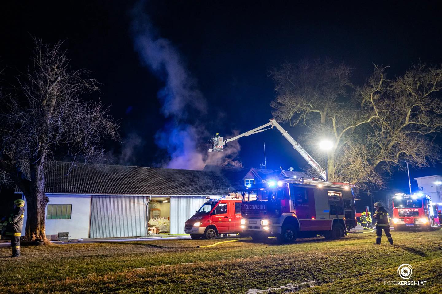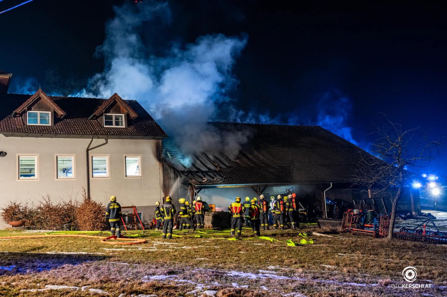 Kurz vor Mitternacht und kurz nach der Jahresvollversammlung der FF St. Georgen/Gusen durchbrach das Heulen der Sirenen die nächtliche Ruhe der Region. Neben dem Feuerwehrhaus der FF Pürach brach in einer Maschinenhalle ein Brand aus. 10 Feuerwehren der Umgebung eilten den Kameraden in Pürach zur Hilfe. Als Teil der Alarmstufe 2 rückte dementsprechend auch die Feuerwehr St. Georgen/Gusen zur Brandbekämpfung an – erst laut Alarmplan mit dem Tanklöschfahrzeug, in weiterer Folge wurde auch unser LFA nachgefordert. Gemeinsam mit rund hundert weiteren Kräften wurden die Flammen erfolgreich bekämpft. Der umfassende Löschangriff zeigte rasch seine Wirkung und das Feuerwehrhaus selbst konnte erfolgreich geschützt werden. Der schnellen Reaktion der Püracher Kameraden ist es zu verdanken, dass die eigene Einsatzbereitschaft nach wie vor gewährleistet werden kann. Für die Feuerwehr St. Georgen und für die meisten weiteren Feuerwehren war der Einsatz nach rund 2,5 Stunden wieder beendet. Die Nachlöscharbeiten zogen sich noch bis in die Morgenstunden. Die Brandursachenermittlung wurde umgehen aufgenommen. Presseberichte: FotoKerschi: https://fotokerschi.at/blog/brand-in-purach-fordert-einsatz-von-elf-feuerwehren